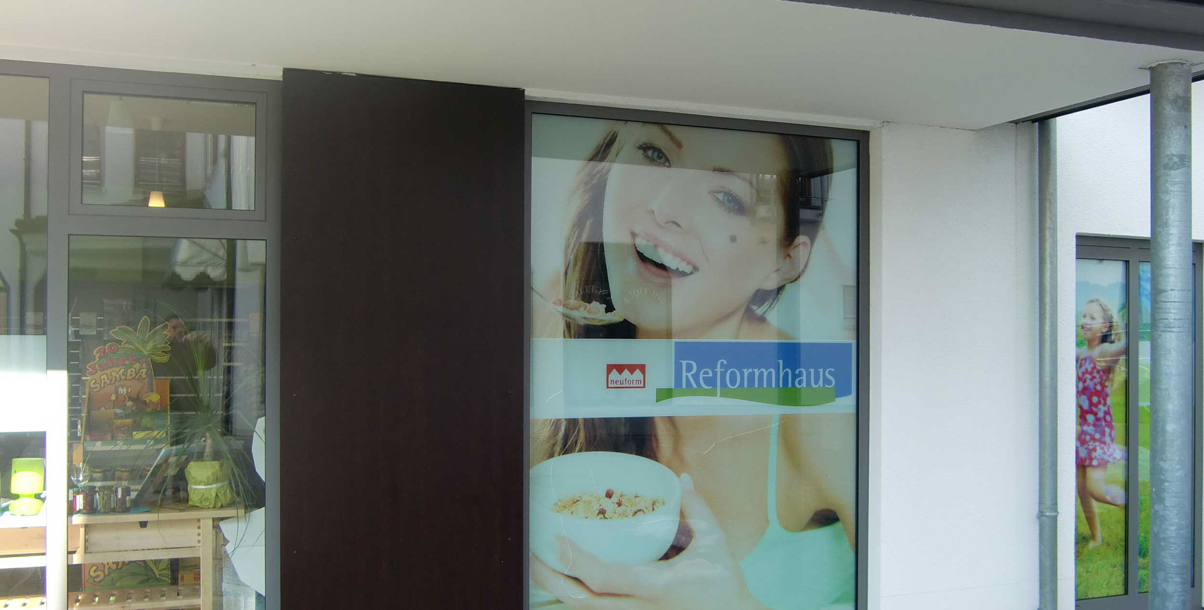 Wir produzieren auf Lösemitteldruckern und Flachbettplottern Folienprints